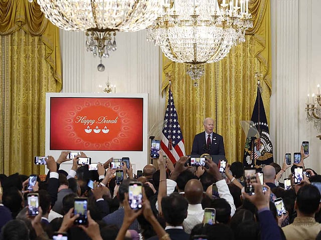 இந்நிலையில், அமெரிக்காவின் வெள்ளை மாளிகையில் இன்று தீபாவளி கொண்டாட்டம் நடைபெற்றது. இந்த நிகழ்ச்சியில் அமெரிக்க அதிபர் ஜோ பைடன் பங்கேற்றார். இந்த கொண்டாட்ட நிகழ்ச்சியில் அமெரிக்காவாழ் இந்தியர்கள், எம்.பி.க்கள், அரசு அதிகாரிகள் உள்பட பல்வேறு தரப்பினர் பங்கேற்றனர். சர்வதேச விண்வெளி மையத்தில் இருந்து சுனிதா வில்லியம்சும் தீபாவளிக்கு வாழ்த்து தெரிவித்தார். அவர் வாழ்த்து தெரிவித்த வீடியோவும் வெள்ளை மாளிகையில் ஒளிபரப்பப்பட்டது.