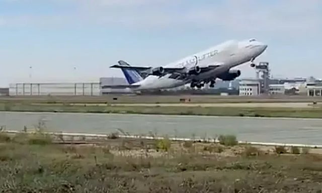 போயிங் 787 ட்ரீம்லைனர் உதிரிபாகங்களைக் கொண்டு செல்வதற்குப் பயன்படுத்தப்படும் ராட்சத விமானம் இத்தாலியில் உள்ள டரன்டோவில் இருந்து புறப்பட்டு, அமெரிக்காவின் சார்லஸ்டனில் நகருக்கு செல்ல இருந்தது.