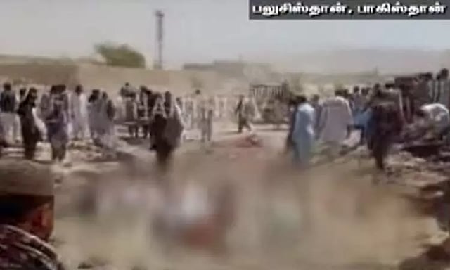 பாகிஸ்தானின் மஸ்தூங் மாவட்டத்தில் உள்ள மசூதியின் அருகே நபிகள் நாயகத்தின் பிறந்த நாளை கொண்டாட பொதுமக்கள் கூடியிருந்தனர். இந்நிலையில் திடீரென பயங்கர சத்தத்துடன் குண்டு வெடித்தது.