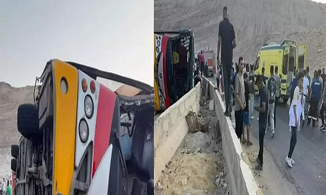 வடகிழக்கு எகிப்தின் சூயசை பகுதியில் கலாலா பல்கலைக்கழகம் செயல்பட்டு வருகிறது. பல்கலைக்கழகம் முடிந்து வீடு திரும்பி கொண்டிருந்த மாணவர்களை ஏற்றி சென்ற பஸ் ஐன் சோக்னா நெடுஞ்சாலை வழியாக சென்ற கொண்டிருந்தபோது திடீரென சாலையில் கவிழ்ந்து விபத்துக்குள்ளானது.