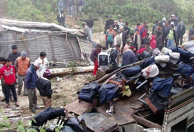 நேபாளத்தின் தாடிங் மாவட்டத்தில் உள்ள நெடுஞ்சாலையில் சென்று கொண்டிருந்த பேருந்து ஆற்றில் பாய்ந்து விபத்துக்குள்ளானதில் பேருந்தில் பயணம் செய்த 14 பேர் பலியாகினர். ராஜ்பிராஜ் என்ற இடத்தில் இருந்து தலைநகர் காத்மாண்டுவுக்கு 50 பேருடன் சென்று கொண்டிருந்த இந்த பேருந்து, வளைவு ஒன்றில் திரும்புகையில் ஓட்டுநரின் கட்டுப்பாட்டை இழந்து ஆற்றில் பாய்ந்ததாக அங்குள்ள ஊடகங்கள் செய்தி வெளியிட்டுள்ளன.