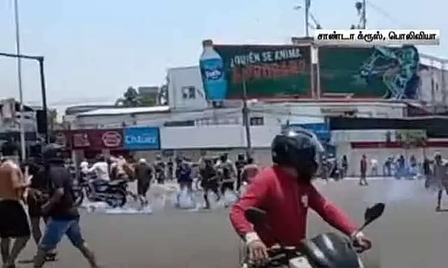 இந்நிலையில் பொலிவியாவின் மிகப்பெரிய நகரமான சாண்டா குரூஸ் நகரில், 3-வது வாரமாக நடைபெறும் போராட்டத்தில் போலீசாருக்கும், போராட்டக்காரர்களுக்கும் இடையே மோதல் வெடித்தது. இந்த மோதலில் பலர் படுகாயம் அடைந்த நிலையில், போலீசார் தடியடி நடத்தி போராட்டக்காரர்களை கலைத்தனர்.