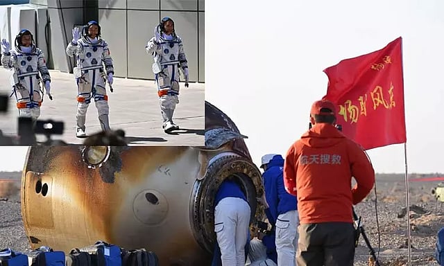 இந்நிலையில், 214 நாட்கள் விண்வெளியில் தங்கிய 3 சீன வீரர்களும் நேற்று பூமி திரும்பினர். மங்கோலியாவில் உள்ள விண்வெளி ஏவுதளத்தில் விண்கலம் தரையிறங்கியது. பூமி திரும்பிய விண்வெளி வீரர்களுக்கு உற்சாக வரவேற்பு அளிக்கப்பட்டது.
