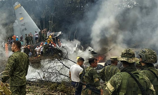 கொலம்பியாவில் 125 பேருடன் புறப்பட்ட ராணுவ விமானம் (சி-130 ஹெர்குலஸ்) கீழே விழுந்து நொறுங்கி பெரும் விபத்துக்குள்ளானதில், சுமார் 66 பேர் உயிரிழந்துள்ளதாக முதற்கட்ட தகவல் வெளியாகி உள்ளது.