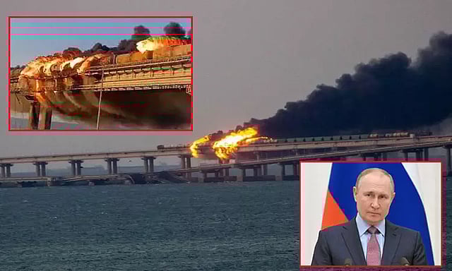 ரஷியா மற்றும் உக்ரைன் இடையேயான போரின் ஒரு பகுதியாக ரஷியா மற்றும் கிரீமியாவுக்கு இடையேயான பகுதிகளை இணைக்கும் கெர்ச் ஜலசந்தியின் குறுக்கே கட்டப்பட்ட் முக்கிய பாலம் ஒன்று குண்டுவெடிப்பில் சேதமடைந்தது.