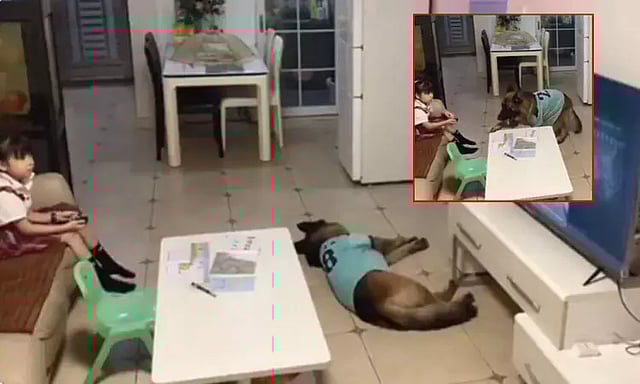 இந்த நிலையில், படிக்காமல் டி.வி. பார்த்து கொண்டு இருந்த ஒரு சிறுமியை செல்ல பிராணியான நாய் ஒன்று, சிறுமியின் அப்பா வருகையை அறிந்து, படிக்கும்படி அறிவுறுத்திய வீடியோ வைரலாகி வருகிறது.
