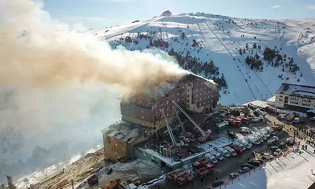 துருக்கி நாட்டின் வடமேற்கு பகுதியில் உள்ள போலு மாகாணத்தில், சுமார் 12 மாடிகளைக் கொண்ட ஓட்டல் மற்றும் பனிச்சறுக்கு விடுதி அமைந்துள்ளது. தற்போது துருக்கியில் 2 வாரம் பள்ளி விடுமுறை விடப்பட்டுள்ளதால், இங்கு சுற்றுலா பயணிகளின் வருகை அதிகரித்து காணப்பட்டது.