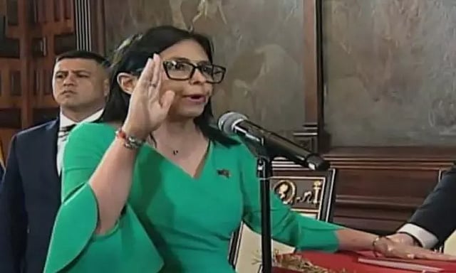 உறுதி மொழி ஏற்பதற்கு முன், எங்கள் தாயகத்திற்கு எதிரான சட்டவிரோத இராணுவ ஆக்கிரமிப்பால் வெனிசுலா மக்கள் மீது ஏற்படுத்தப்பட்ட துன்பங்களுக்கு நான் வருத்தத்துடன் வருகிறேன் என்று அவர் தனது வலது கையை உயர்த்தி கூறினார்.