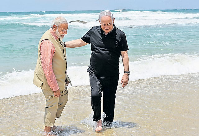 பிரதமர் நரேந்திர மோடி, இஸ்ரேல் பிரதமருடன் நேற்று ஹைபா நகரில் உள்ள போர் நினைவிடத்திற்கு சென்றார். 1918-ம் ஆண்டு ஹைபா நகரை ஜெர்மன் மற்றும் துருக்கி படைகளிடம் இருந்து மீட்டபோது ஏற்பட்ட போரில் உயிர் நீத்த இந்திய வீரர்களின் நினைவிடத்தில் பிரதமர் மோடி மலர்வளையம் வைத்து மரியாதை செலுத்தினார்.