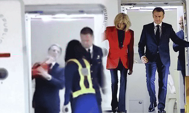 மேலும் இமானுவேல் மேக்ரான் அதனை வெளிக்காட்டாமல் விமானத்தின் கதவின் வழியாக வெளியே உள்ளவர்களை நேக்கி கையை அசைக்கிறார். இந்த வீடியே தற்பேது இணையதளங்களில் வைரலாகி வருகிறது. அதேடு இமானுவேல் மேக்ரான் மீது அவர் மனைவியின் முகம் இறுக்கமாக இருப்பதை அந்த வீடியேவை பார்தால் தெரிகிறது. அதாவது பெதுவாக தலைவர்கள் வெளிநாடுகளுக்கு சுற்றுப்பயணம் மேற்கெள்ளும்பேது மனைவியுடன் கைகேர்த்தபடி விமானத்தில் இருந்து இறங்குவார்கள். நேற்றைய தினம் இமானுவேல் மேக்ரான் தனது மனைவி பிரிஜிட் மேக்ரானிடம் கைகேர்க்க கையை நீட்டுவார்.ஆனால் மனைவி பிரிஜிட் மேக்ரான் அதனை கண்டுக்கெள்ளாமல் விமான படிக்கட்டில் இறங்கி வருவதாக உள்ளது. இதனை பார்க்கும்பேது இருவருக்கும் இடையே பிரச்சினை உள்ளது வெட்ட வெளிச்சமாகிறது என்று சமூகதளவாசிகள் கருத்து தெரிவித்து வருகின்றனர்.