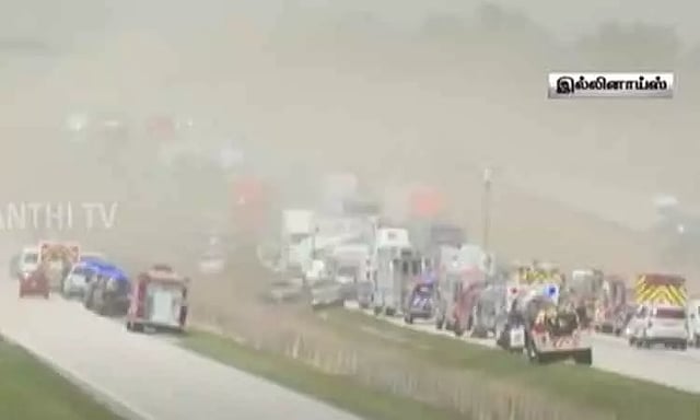 அமெரிக்காவில் உள்ள இலினாய்ஸ் மாகாணத்தில் கடுமையான புழுதிப்புயல் ஏற்பட்டுள்ளது. அங்குள்ள சாங்கமன், மாண்ட்கோமெரி உள்ளிட்ட பகுதிகளில் சாலைகளில் எதிரே வரும் வாகனங்கள் தெரியாத அளவிற்கு புழுதிப்புயல் சூழ்ந்தது.