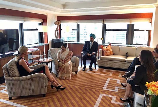 இந்நிலையில், அந்நாட்டு அதிபர் டொனால்ட் டிரம்ப் மகள் இவங்கா டிரம்ப்-ஐ சந்தித்து சுஷ்மா பேசினார். பெண்களுக்கான அதிகாரமளித்தல் குறித்து இருவரும் பேசியதாக அவரது செய்தித்தொடர்பாளர் தெரிவித்துள்ளார். மேலும், இவங்கா டிரம்ப் விரைவில் இந்தியா வர உள்ளார், அது குறித்தும் இருவரும் பேசியதாகவும் தெரிவிக்கப்பட்டுள்ளது.