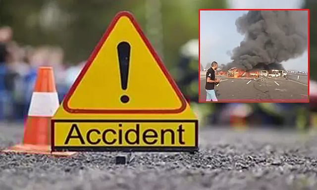 சில வாகனங்களில் தீப்பற்றி கொண்டது. இந்த சம்பவத்தில் 32 பேர் உயிரிழந்தனர். 63 பேர் காயமடைந்தனர். இதுபற்றிய தகவல் அறிந்ததும், ஆம்புலன்சுகள் உடனடியாக சென்றன. காயமடைந்தவர்கள் மீட்கப்பட்டு சிகிச்சைக்காக மருத்துவமனைக்கு கொண்டு செல்லப்பட்டனர்.