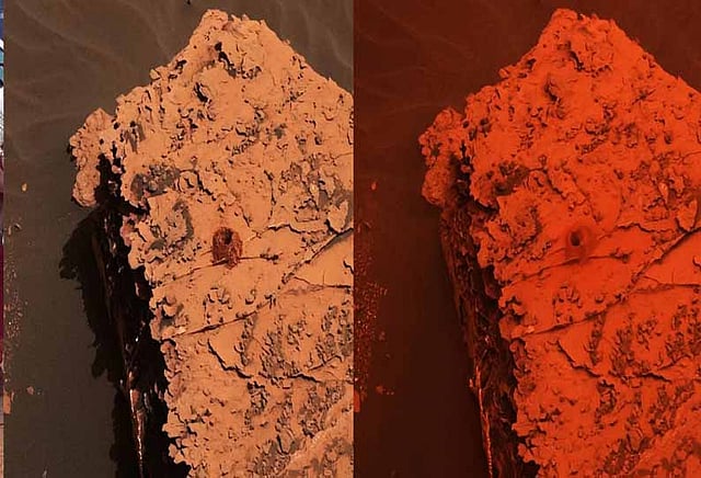 சாதாரண நாட்களில் எடுக்கப்பட்ட புகைப்படத்தையும், புழுதி புயலின் போது எடுக்கப்பட்ட புகைப்படத்தையும் ஒப்பிட்டு நாசா பாதிப்புகளை விளக்கியுள்ளது.