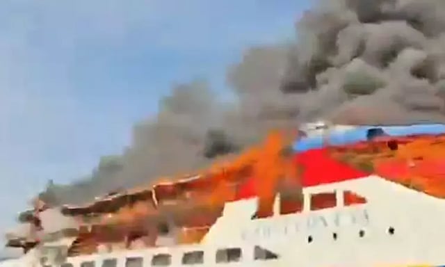 இந்தோனேசியாவில் 280 பேருடன் சொகுசு கப்பல் ஒன்று வடக்கு சுலவேசியில் உள்ள தலாவுத் தீவில் இருந்து மனாடோ நகரை நோக்கி சென்று கொண்டிருந்தது. அப்போது எதிர்பாராத விதமாக திடீரென கப்பலில் தீ விபத்து ஏற்பட்டது. தீ கப்பலின் மற்றப் பகுதிகளுக்கு மளமளவெனப் பரவி கப்பல் முழுவதுமாக தீபற்றி எரியத் தொடங்கியது.