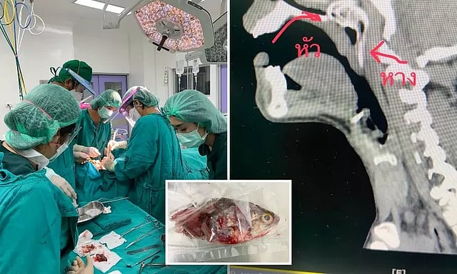 இதில் திணறி போன அந்த நபர் தொண்டையை இறுக பிடித்து கொண்டார். உடனடியாக அவர் மருத்துவமனைக்கு கொண்டு செல்லப்பட்டார். அவருக்கு எக்ஸ்-ரே எடுத்து பார்க்கப்பட்டது. மீன் சிக்கி இருந்த சரியான இடம் கண்டறியப்பட்டு, அவசரகால அறுவை சிகிச்சை நடத்தப்பட்டது.