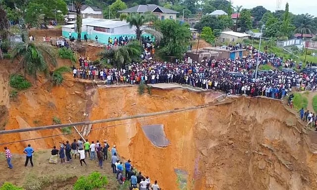 கனமழை மற்றும் வெள்ளத்தை தொடர்ந்து கின்ஷாசா நகரின் பல்வேறு பகுதிகளில் பயங்கரமான நிலச்சரிவு ஏற்பட்டது. இதில் ஏராளமான வீடுகள் மண்ணோடு மண்ணாக புதைந்தன.