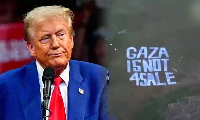 இந்நிலையில், டிரம்ப்பின் பேச்சுக்கு பதிலடி கொடுக்கும் வகையில் ஸ்காட்லாந்து நாட்டில் அவருக்கு சொந்தமான கோல்ப் மைதானத்திற்குள் பாலஸ்தீன குழுவினர் சிலர் புகுந்து, அங்குள்ள புல்வெளி பகுதியில் 'காசா விற்பனைக்கு இல்லை' என்று பிரமாண்டமாக எழுதி வைத்துள்ளனர்.