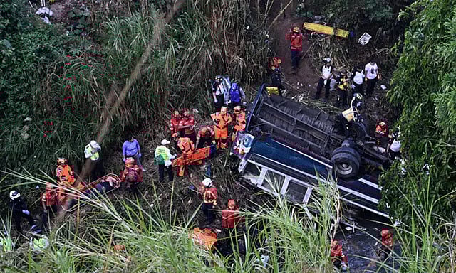 மத்திய அமெரிக்க நாடுகளில் ஒன்றான கவுதமலாவில் நேற்று முன் தினம் பஸ் ஒன்று பள்ளத்தாக்கில் கவிழ்ந்து விபத்திற்குள்ளானது. பாலத்தின் மீது சென்றுகொண்டிருந்த அந்த பஸ், சாலையோர தடுப்பின் மீது மோதி கட்டுப்பாட்டை இழந்து பள்ளத்தாக்கில் விழுந்தது. இந்த விபத்தில் 51 பேர் உயிரிழந்துள்ளதாக முதற்கட்ட தகவல் வெளியாகி இருந்தது.