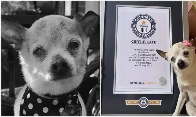 அமெரிக்காவின் நியூயார்க் நகரில் கடந்த 2000-ம் ஆண்டு மார்ச் 28-ம் தேதி பிறந்த நாயை, பாபி மற்றும் ஜூலி கிரிகோரி என்ற தம்பதி பெப்பில்ஸ் என பெயரிட்டு வளர்க்கத் தொடங்கினர். உலகிலேயே மிக அதிக வயதுடைய நாயாக 21 வயதான டோபி கெய்த் என்ற நாய் அறிவிக்கப்பட்டபோது, பாபி - ஜூலி தம்பதி தங்களது நாய் அதை விட அதிக வயதுடையது என்பதால், கின்னஸ் சாதனைக்கு விண்ணப்பித்தனர்.