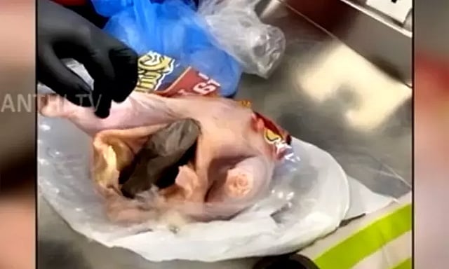 அமெரிக்காவின் புளோரிடா மாகாண விமான நிலையத்தில் கோழி இறைச்சிக்குள் மறைத்து கொண்டு வரப்பட்ட கைத்துப்பாக்கி கைப்பற்றப்பட்ட சம்பவம் பரபரப்பை ஏற்படுத்தியுள்ளது.