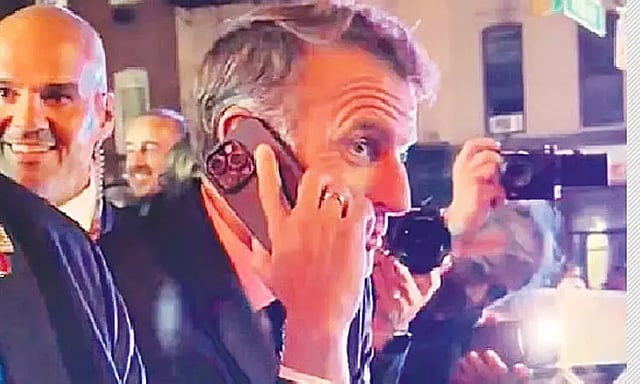 நியூயார்க்கில் உள்ள ஐ.நா. தலைமையகத்துக்கு அமெரிக்க அதிபர் செல்லும்போதெல்லாம், அந்தத் தலைமையகத்தைச் சுற்றி பாதுகாப்பு கருதி பொதுப் போக்குவரத்து முழுமையாக நிறுத்தப்படுவது வழக்கம். இதுதான் திங்கள்கிழமை நடைபெற்றது. அதேவேளையில், தனது வாகனம் நிறுத்தப்பட்டது தொடர்பாக டிரம்பை கைப்பேசியில் தொடர்புகொண்டு மேக்ரான் சிரித்தபடியே கூறினார். அவர்களின் பேச்சு நட்பார்ந்த முறையில் இருந்தது என்று கூறினர்.