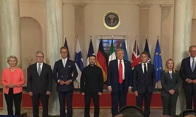 போரை முடிவுக்கு கொண்டு வர அமெரிக்கா, ஐரோப்பிய நாடுகளின் உதவி தேவை, இன்று கூட ரஷியா நடத்திய தாக்குதலில் ஒரு குழந்தை உயிரிழந்தது. பாதுகாப்பை உறுதி செய்யாமல் உக்ரைனில் தேர்தல் நடத்த முடியாது, யாருடைய தலையீடும் இல்லாமல் தேர்தல் நடைபெற வேண்டும் என்று கூறினார். தொடர்ந்து 7 ஐரோப்பிய நாட்டு தலைவர்களுடன் டிரம்ப் குழு புகைப்படம் எடுத்துக்கொண்டார்.
