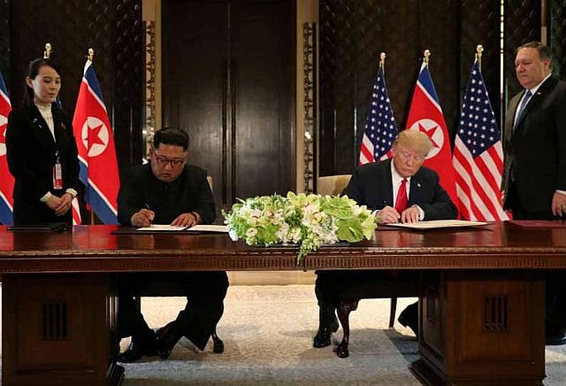 சிங்கப்பூரில் வரலாற்று சிறப்புமிக்க ஒப்பந்தங்களில் அமெரிக்கா அதிபர் டொனால்ட் ட்ரம்ப்- வடகொரியா அதிபர் கிம் ஜாங் உன் ஆகியோர் இன்று கையெழுத்திட்டனர்.