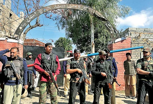 அந்த வகையில், பெஷாவர் நகரில் இருந்து சுமார் 30 கி.மீ. தொலைவில் உள்ள டாங்கி நகரில் அமைந்துள்ள கோர்ட்டிலும் பலத்த போலீஸ் பாதுகாப்பு போடப்பட்டிருந்தது.