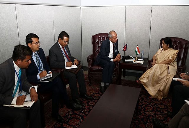 இதனிடையே நேபாள வெளியுறவுத்துறை அமைச்சர் ப்ரதீப் குமார் க்யாவாலியுடன், சுஷ்மா ஸ்வராஜ் பேச்சுவார்த்தையில் ஈடுபட்டார். இரு நாடுகளுக்கும் இடையே ஏற்பட்டுள்ள உடன்படிக்கைகளின் படி மேற்கொள்ளப்பட்டு வரும் திட்டங்களை துரிதப்படுத்துவது குறித்து இருதரப்பினரும் பேச்சுவார்த்தையில் ஈடுபட்டுள்ளதாக வெளியுறவுத்துறை செயலாளர் சங்கர் தாஸ் பைராஹி தெரிவித்தார். மேலும் இந்த சந்திப்பில் வெளியுறவுத்துறை செயலாளர் மற்றும் மூத்த அரசாங்க அதிகாரிகள் கலந்து கொண்டனர்.