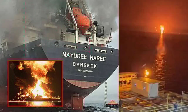 இந்த நிலையில், அமெரிக்காவுடன் தொடர்புடைய எண்ணெய் கப்பல் ஒன்றை பெர்சிய வளைகுடா பகுதியில் வைத்து ஈரானின் டிரோன்கள் கடுமையாக தாக்கின. இதில் கப்பல் கொழுந்து விட்டு எரிகிறது.