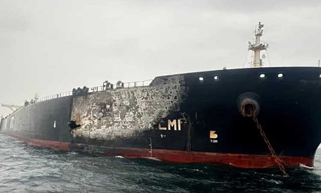 டிரோன் தாக்குதலால் கப்பல் தீப்பிடித்து எரிந்தது. இதில் மேல்தளம் கடும் சேதம் அடைந்தது. தீயை அணைக்க கடல்சார் தீய்ணைப்பு வீரர்கள் கடுமையாக போராடினார்கள்.