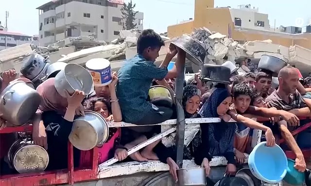 இந்தநிலையில்,போதிய உணவு கிடைக்காமல் காசாவில் பட்டினி பிரச்சினை பெரிய அளவில் உருவெடுத்துள்ளதால், இஸ்ரேலுக்கு சர்வதேச அளவில் அழுத்தம் ஏற்பட்டுள்ளது. இதையடுத்து காசா சிட்டி, டெய்ர் அல்- பலாஹ் மற்றும் முவாசி ஆகிய மக்கள் அடர்த்தி நிறைந்த மூன்று பகுதிகளில் தினமும் காலை 10 மணி முதல் இரவு 8 மணி வரை 10 மணி நேரம் போர் நிறுத்தத்தை அறிவித்துள்ளது. உணவு, மருந்து மற்றும் பிற அத்தியாவசியப் பொருட்களை தினமும் காலை 6 மணி முதல் இரவு 11 மணி வரை இந்த வழித்தடங்கள் வழியாக எடுத்துச் செல்லலாம் மற்ற பகுதிகளில், வழக்கம் போல் தாக்குதல்கள் தொடரும். மறு அறிவிப்பு வரும் வரை இது அமலில் இருக்கும். காசாவில் மாவு, சர்க்கரை, மற்றும் பதப்படுத்தப்பட்ட உணவு பொருட்கள் அடங்கிய பைகளை வான்வழியாக வீசியதாகவும் இஸ்ரேல் ராணுவம் தெரிவித்தது.