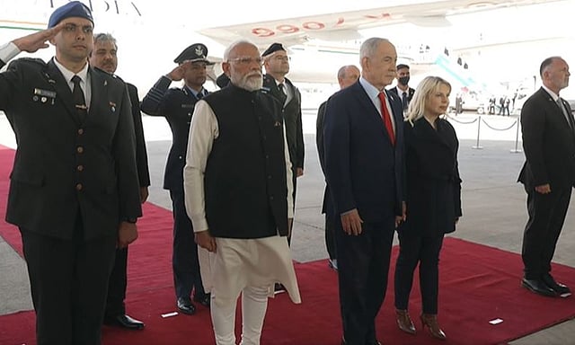 பிரதமர் மோடி இஸ்ரேல் நாட்டுக்கு 2 நாள் சுற்றுப்பயணம் மேற்கொண்டுள்ளார். இதற்காக நேற்று காலை அவர் டெல்லியில் இருந்து தனி விமானத்தில் புறப்பட்டு சென்றார். இஸ்ரேலின் பென் குரின் சர்வதேச விமான நிலையம் சென்றடைந்த பிரதமர் மோடியை அந்நாட்டின் பிரதமர் பெஞ்சமின் நெதன்யாகு நேரில் சென்று வரவேற்றார்.