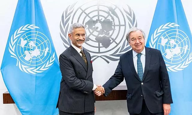 இந்திய வெளியுறவுத்துறை மந்திரி ஜெய்சங்கர் அரசுமுறைப் பயணமாக அமெரிக்கா சென்றுள்ளார். இந்நிலையில், அமெரிக்காவின் நியூயார்க் நகரில் ஐ.நா. சபை பொதுச்செயலாளர் அண்டோனியோ குட்டரெஸை மத்திய மந்திரி ஜெய்சங்கர் சந்தித்து பேசினார்.