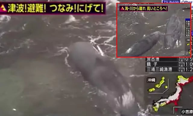 இந்நிலையில், ஜப்பான் கடலோர பகுதியில் 4 பெரிய உருவிலான திமிங்கலங்கள் கரை ஒதுங்கியுள்ளன. எனினும், ரிக்டரில் 8.8 அளவிலான சக்தி வாய்ந்த நிலநடுக்கம் ஏற்படுவதற்கு முன்பே அவரை கரை ஒதுங்கி விட்டன என தகவல் தெரிவிக்கின்றது. இதனால், நிலநடுக்கம் மற்றும் சுனாமி அலைகள் தாக்குவதற்கு முன்பே அவற்றை திமிங்கலங்கள் அறிந்திருக்க கூடும் என கூறப்படுகிறது. ஆனால், அதற்காக அவை ஏன் கரையொதுங்கின? என்ற விவரமும் தெரிய வராமல் உள்ளது.