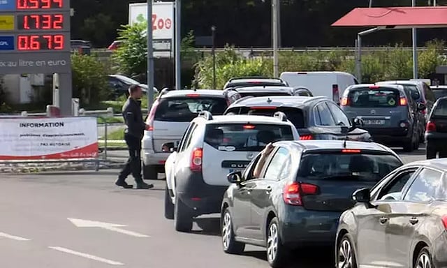 பிரான்சில் பெட்ரோல் விநியோகம் பாதிக்கப்பட்டதால், முக்கிய நகரங்களில் பெட்ரோல் பங்குகளுக்கு வெளியே கார்கள் நீண்ட வரிசையில் நிற்கின்றன.