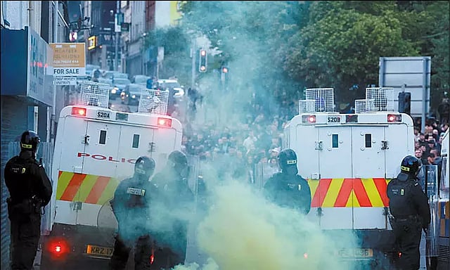 இங்கிலாந்தின் பாலிமெனா நகரில் பெண் ஒருவர் பலாத்காரம் செய்யப்பட்டார். இதற்கு எதிர்ப்பு தெரிவித்து அவரது உறவினர்கள் கடந்த 3 நாட்களாக போராட்டம் நடத்தி வருகின்றனர். இதற்கிடையே வெளிநாட்டைச் சேர்ந்த 3 சிறுவர்கள் இந்த சம்பவத்தில் ஈடுபட்டதாக குற்றம் சாட்டப்பட்டது. எனவே புலம்பெயர் தொழிலாளர்களின் வீடு, அலுவலகங்கள் தீ வைத்து கொளுத்தப்பட்டன. இதனால் அங்கு பெரும் பதற்றம் நிலவுகிறது.