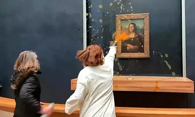 இந்தநிலையில், உலக புகழ்பெற்ற மோனா லிசா ஓவியத்தின் மீது பெண் போராட்டக்காரர்கள் சூப்பை ஊற்றியது பரபரப்பை ஏற்படுத்தியுள்ளது.