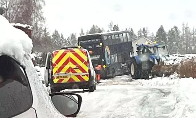 ஐரோப்பிய நாடான ஸ்காட்லாந்தில் கடந்த சில நாட்களாக கடும் பனிப்பொழிவு நிலவுகிறது. எனவே சாலையில் முன் செல்லும் வாகனங்கள் தெரியாத அளவுக்கு பனிமூட்டமாக மாறின. அப்போது சாலையில் நடந்து சென்ற 2 பேர் மீது கார் மோதியது. இதில் படுகாயம் அடைந்த அவர்கள் மீட்கப்பட்டு ஆஸ்பத்திரியில் சிகிச்சை பெற்று வருகின்றனர். அதேபோல் அபெர்டீன்ஷையர் நகர சாலையில் சென்ற மாடி பஸ் பனிக்கட்டிகளுக்கு இடையே சிக்கி கொண்டது. மீட்பு படையினர் அந்த பனிக்கட்டிகளை அப்புறப்படுத்திய பிறகே பஸ் அங்கிருந்து புறப்பட்டது. இதனால் பல மணி நேரம் அந்த சாலையில் போக்குவரத்து துண்டிக்கப்பட்டது. இதனை தொடர்ந்து வடக்கு பிராந்தியத்தில் கடும் பனிப்பொழிவுக்கான மஞ்சள் எச்சரிக்கை விடுக்கப்பட்டது. எனவே அந்த பகுதியில் உள்ள 100-க்கும் மேற்பட்ட பள்ளிகள் மூடப்பட்டு உள்ளன.