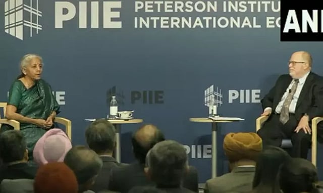 அமெரிக்காவில் மத்திய நிதி மந்திரி நிர்மலா சீதாராமன் சுற்றுப்பயணம் மேற்கொண்டு உள்ளார். அவர் சர்வதேச பொருளாதாரத்திற்கான பீட்டர்சன் மையத்தின் தலைவர் ஆடம் போசன் என்பவருடன் உரையாடினார்.