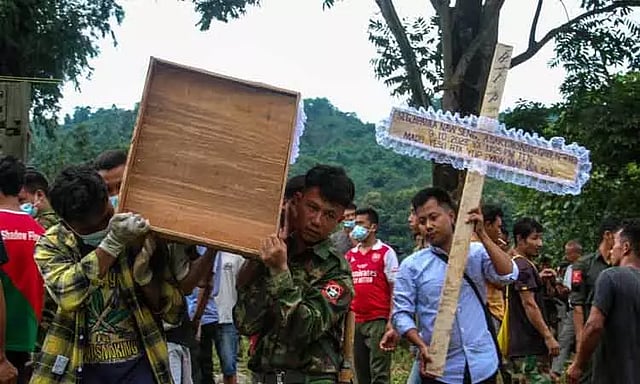 இதனால் ராணுவ ஆட்சிக்கு எதிராக பொதுமக்கள் தொடர்ந்து போராட்டம் நடத்தி வருகின்றனர். மேலும் பல்வேறு இடங்களில் கிளர்ச்சியாளர்களும் ராணுவத்துக்கு எதிராக தாக்குதல் நடத்துகின்றனர். இதற்கு பதிலடியாக ராணுவமும் அவர்கள் மீது தாக்குதல் நடத்துகின்றது. அதன்படி வடக்கு மாகாணமான கச்சினில் ராணுவ ஆட்சிக்கு எதிராக கிளர்ச்சி குழு செயல்படுகிறது. இவர்கள் பயங்கர ஆயுதங்களை தாங்களே தயாரிக்கும் திறன் கொண்டவர்கள். மேலும் ராணுவத்தை எதிர்த்து போராடுவதற்காக உருவாக்கப்பட்ட ஜனநாயக ஆதரவு படைகளுடன் அவர்கள் கூட்டணி வைத்துள்ளதாகவும் கூறப்படுகிறது.