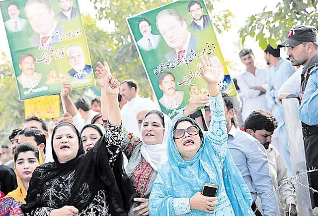 அப்போது பாகிஸ்தான் முஸ்லிம் லீக் (நவாஸ்) கட்சி தலைவர்கள், மந்திரிகள், வக்கீல்கள் உள்பட நவாஸ் ஷெரீப்பின் ஆதரவாளர்கள் நூற்றுக்கணக்கானோர் கோர்ட்டு வளாகத்தில் குவிந்திருந்தனர்.