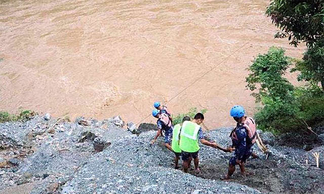 நேபாளத்தில் இன்று அதிகாலை போகாராவில் இருந்து காத்மாண்டுவுக்கு பயணிகளை ஏற்றிக்கொண்டு பஸ் ஒன்று சென்று கொண்டு இருந்தது. பஸ்சில் பயணிகள் 44 பேர் இருந்தனர். பஸ் திடீரென டிரைவரின் கட்டுப்பாட்டை இழந்து ஆற்றில் கவிழ்ந்து விபத்துக்குள்ளானது.