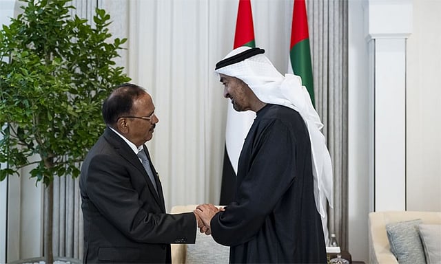 தேசிய பாதுகாப்பு ஆலோசகர் அஜித் தோவல் அரசு முறை பயணமாக ஐக்கிய அரபு அமீரகம் சென்றுள்ளார். அவர் நேற்று ஐக்கிய அரபு அமீரக அதிபர் ஷேக் முகமது பின் நயத் அல் நயானை சந்தித்தார்.