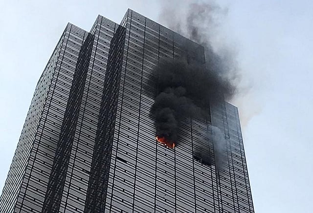 அமெரிக்க அதிபரான டொனால்ட் டிரம்புக்கு நியூயார்க் நகரில் உள்ள மன்ஹாட்டன் பகுதியில் 58 மாடிகள் கொண்ட பிரமாண்ட கட்டிடம் உள்ளது. இதில் மேற்பரப்பில் உள்ள 3 அடுக்குகளை தனது வீடாக மாற்றி வசித்து வருகிறார். அதிபர் பொறுப்பேற்ற டிரம்ப் பெரும்பாலும் வாஷிங்டன் நகரில் வசித்து வருகிறார்.இந்நிலையில் அடுக்கு மாடியின் 50 வது தளத்தில் திடீரென தீ விபத்து ஏற்பட்டுள்ளது. சற்று நேரத்தில் மளமளவென பரவிய இத்தீவிபத்தில் ஒருவர் பலியாகியுள்ளார். மேலும் 4 தீயணைப்பு வீரர்கள் சிறு காயங்கள் அடைந்துள்ளனர்.