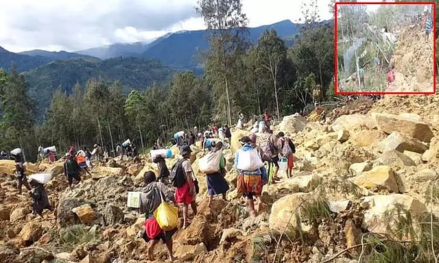 தீவு நாடான பப்புவா நியூ கினியாவில் நேற்று கனமழை பெய்தது. இதன் காரணமாக அங்குள்ள எங்கா மாகாணத்தின் காகோலாம் கிராமத்தில் திடீரென நிலச்சரிவு ஏற்பட்டது. இதனால் பல வீடுகள் சேதமடைந்தன. நேற்று அதிகாலை 3 மணியளவில் நிலச்சரிவு ஏற்பட்டதால் வீட்டில் தூங்கிக் கொண்டிருந்த பலர் மண்ணில் புதையுண்டனர்.