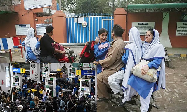 பெட்ரோல், டீசல் தட்டுப்பாடு காரணமாக நிலைமையை சமாளிக்க பாகிஸ்தான் அரசு பல்வேறு நடவடிக்கைகளை எடுத்து வருகிறது. பெட்ரோல், டீசல் பயன்பாட்டை குறைக்கும் நடவடிக்கையாக அந்நாட்டில் உள்ள அனைத்து பள்ளிகளும் வரும் 16ம் தேதி முதல் 2 வாரங்களுக்கு மூடப்படும் என்று பிரதமர் ஷபாஸ் ஷெரீப் தெரிவித்துள்ளார். கல்லூரிகள், பல்கலைக்கழகங்கள் ஆன்லைன் மூலம் வகுப்புகளை நடத்த உத்தரவிடப்பட்டுள்ளது.
