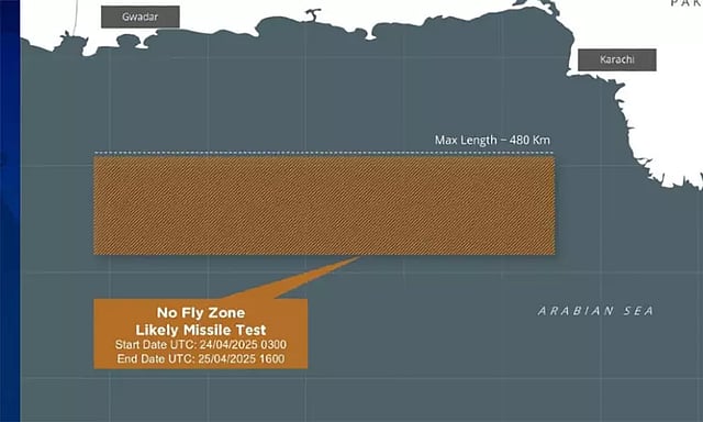 முப்படைகளையும் தயார் நிலையில் இருக்க இந்தியா உத்தரவிட்டுள்ள நிலையில்,கராச்சி கடற்கரை பகுதியில் ஏவுகணை சோதனை நடத்த பாகிஸ்தான் உத்தரவிட்டுள்ளது. பாகிஸ்தானின் இந்த நடவடிக்கையை இந்திய அமைப்புகள் நிலைமையை உன்னிப்பாகக் கண்காணித்து வருவதாக பாதுகாப்புத் துறை வட்டாரங்கள் தெரிவிக்கின்றன. பாகிஸ்தான் ஏவுகணை சோதனையை மேற்கொள்வது வெறும் சோதனை மட்டுமா? அல்லது போருக்கு தயாராகிறதா? என்ற கேள்வி எழுந்துள்ளது.