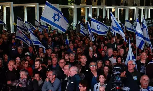 அவர்கள் கைகளில் இஸ்ரேல் கொடிகளை ஏந்தியபடியும், பேனர்களையும் ஏந்தியபடியும், ஒப்பந்தம் ஏற்படுத்த வேண்டும் என வலியுறுத்தி கோஷம் எழுப்பியபடி ஆர்ப்பாட்டத்தில் ஈடுபட்டனர்.